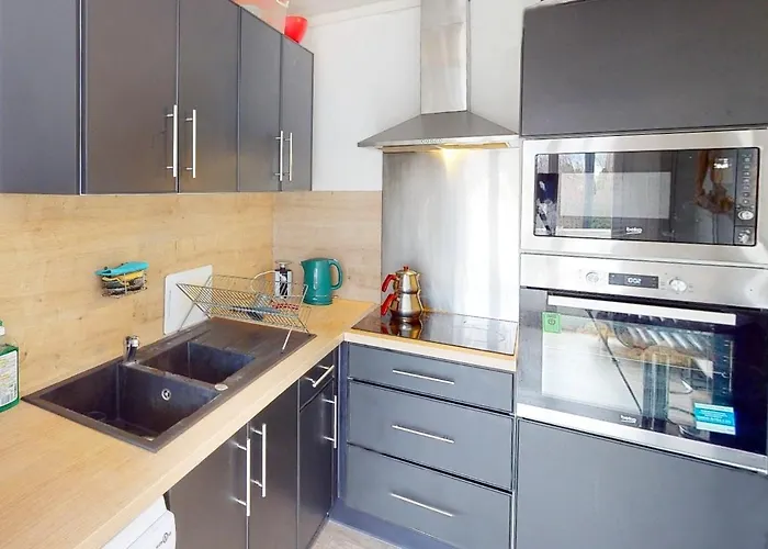 Den här lägenheten har balkong, klädloge och ett komplett kök med tvättmaskin som garanterar en bekväm vistelse. Boendet erbjuder gästerna badlakan och handdukar i badrummet. Dessutom finns det en separat toalett, en dusch och en tvättmaskin.
